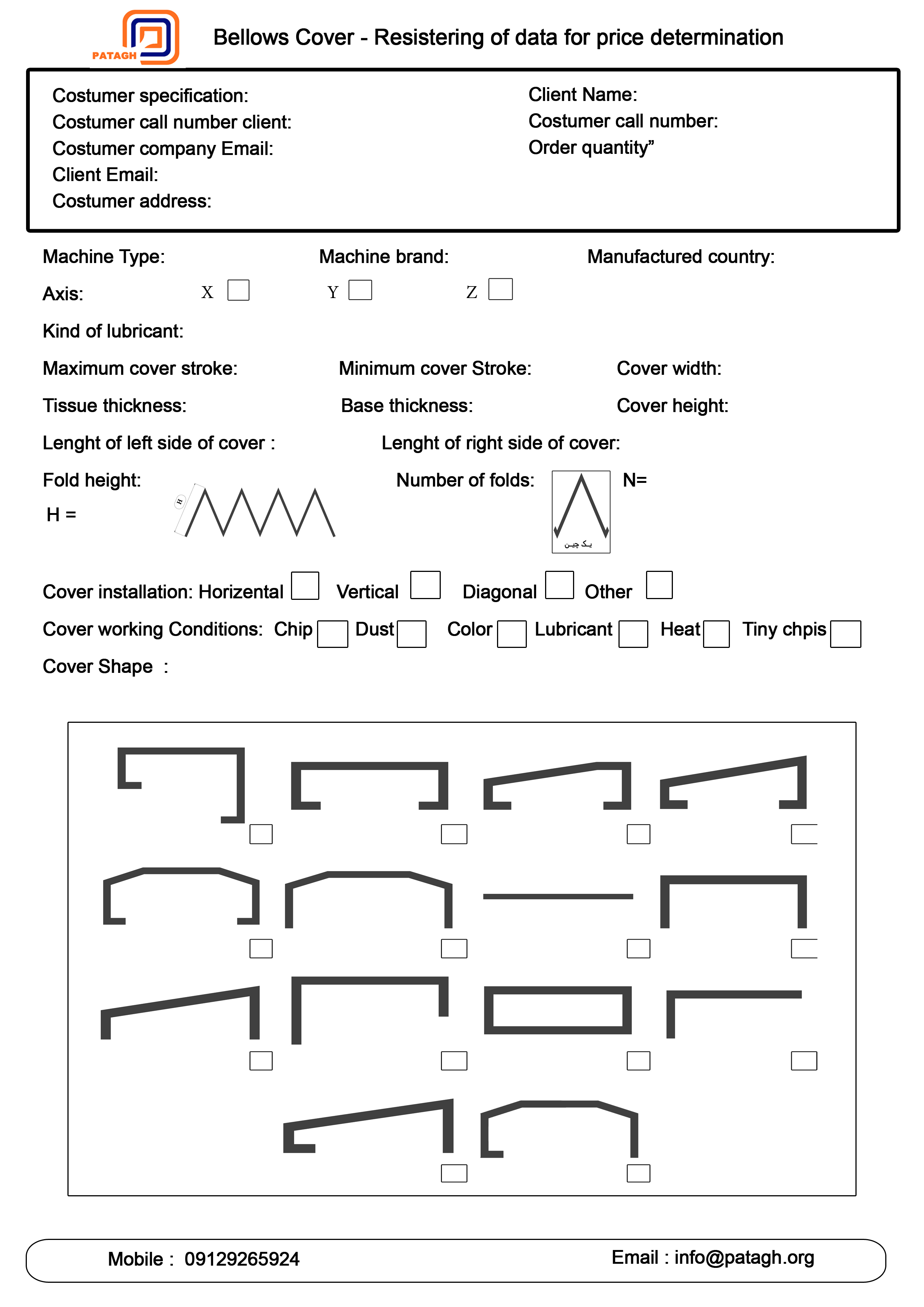 Product order – Bellows cover: